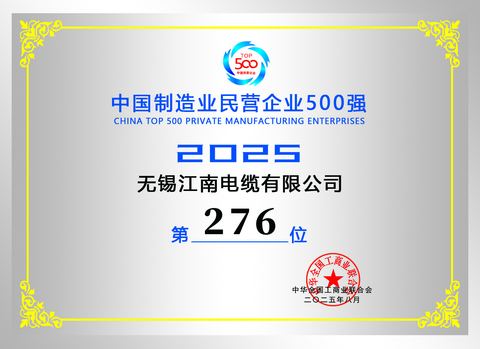 • 2025中国民营企业制造业500强