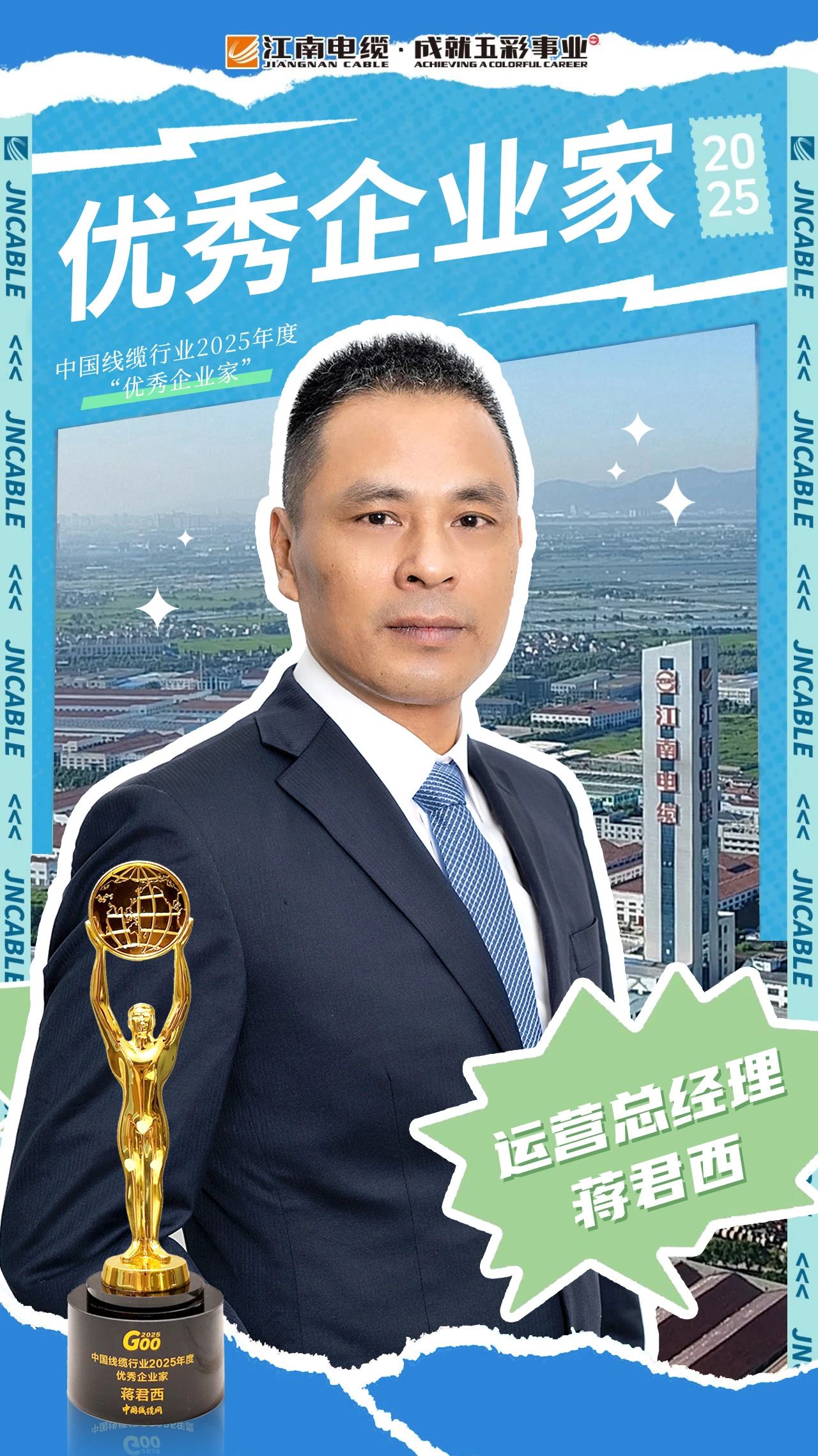 6月27日,中国线缆行业G100企业家领袖峰会暨2025中国线缆行业高质量发展大会在广州举行,会上重磅发布了“优秀企业家”、“优秀职业经理人”、“行业杰出青年”等系列榜单。江南电缆运营总经理蒋君西荣获优秀企业…