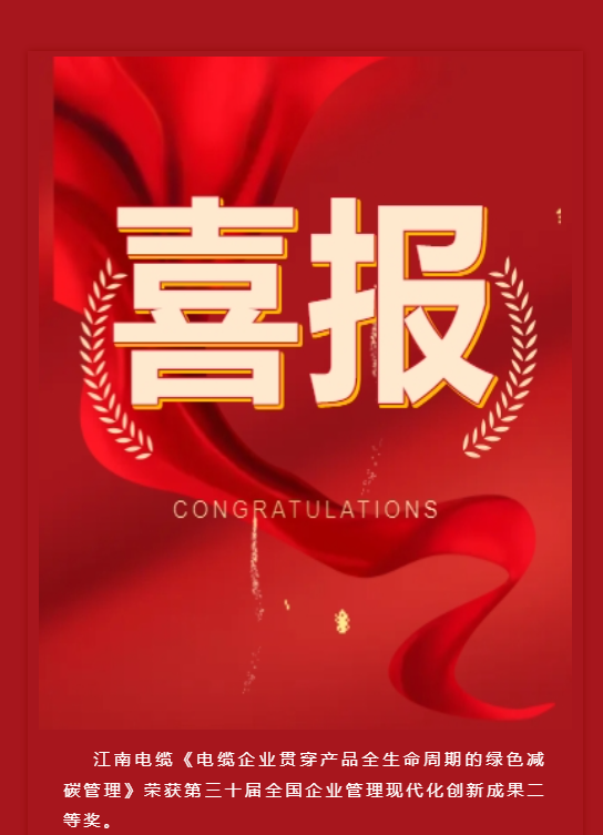 • 【喜报】江南电缆国家级荣誉+1!