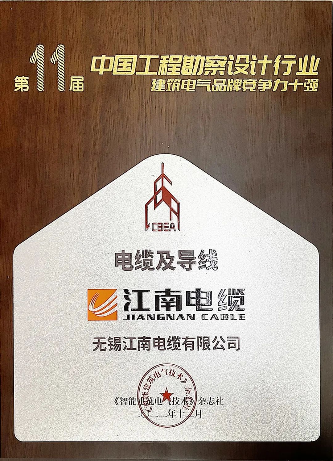 江南电缆荣获第11届建筑电气品牌竞争力十强!